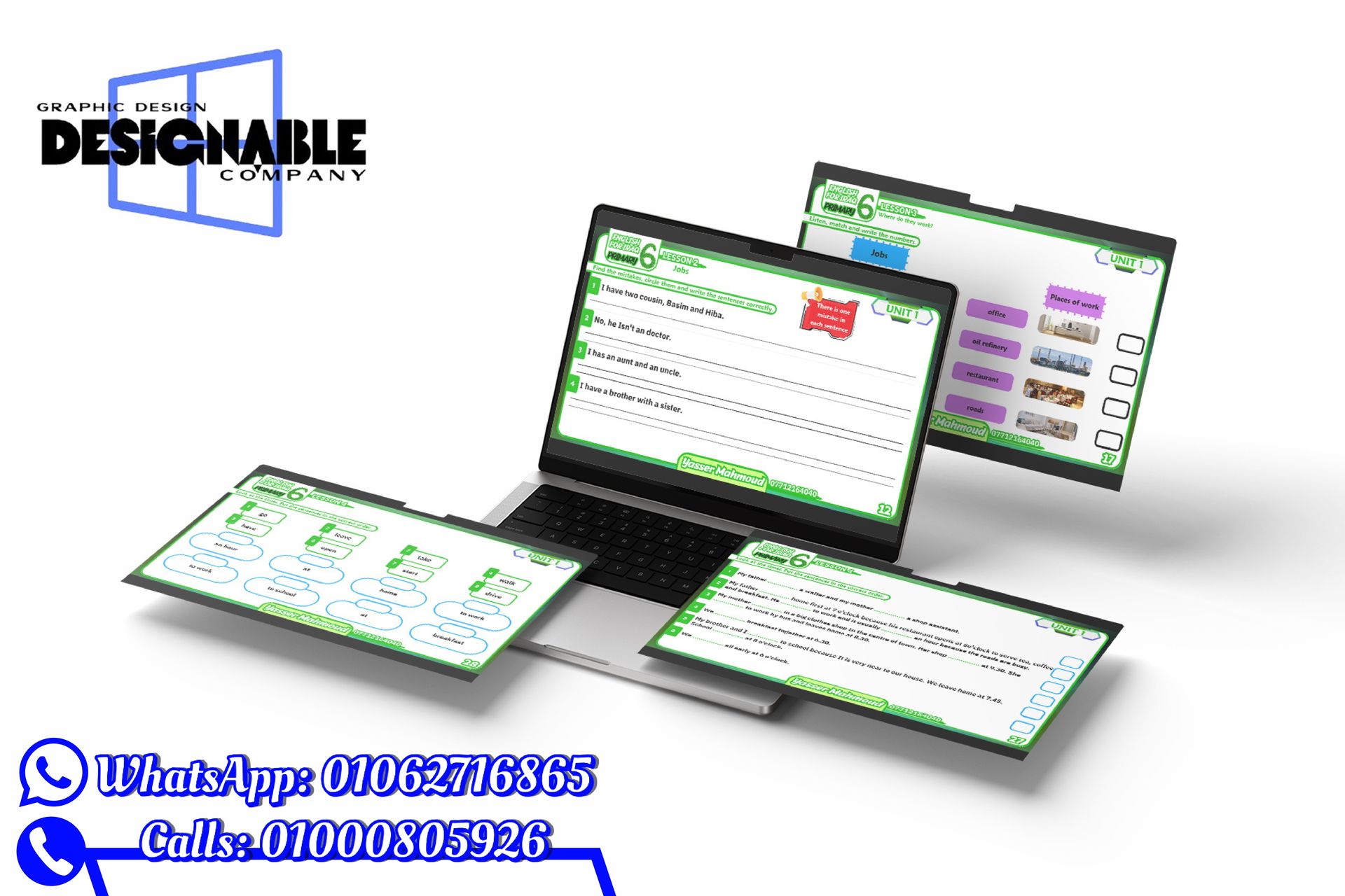 "شكراً لمجهودك انت حقيقي الملازم طالعه تحفه وتنسيقها حلو اوي والوانها هاديه ومريحه تسلم ايدك وكالعادة مبتعملش حاجه وحشه وربنا يوفقك ياارب دائماً" مس نورهان خالد مدرسة لغة إنجليزية