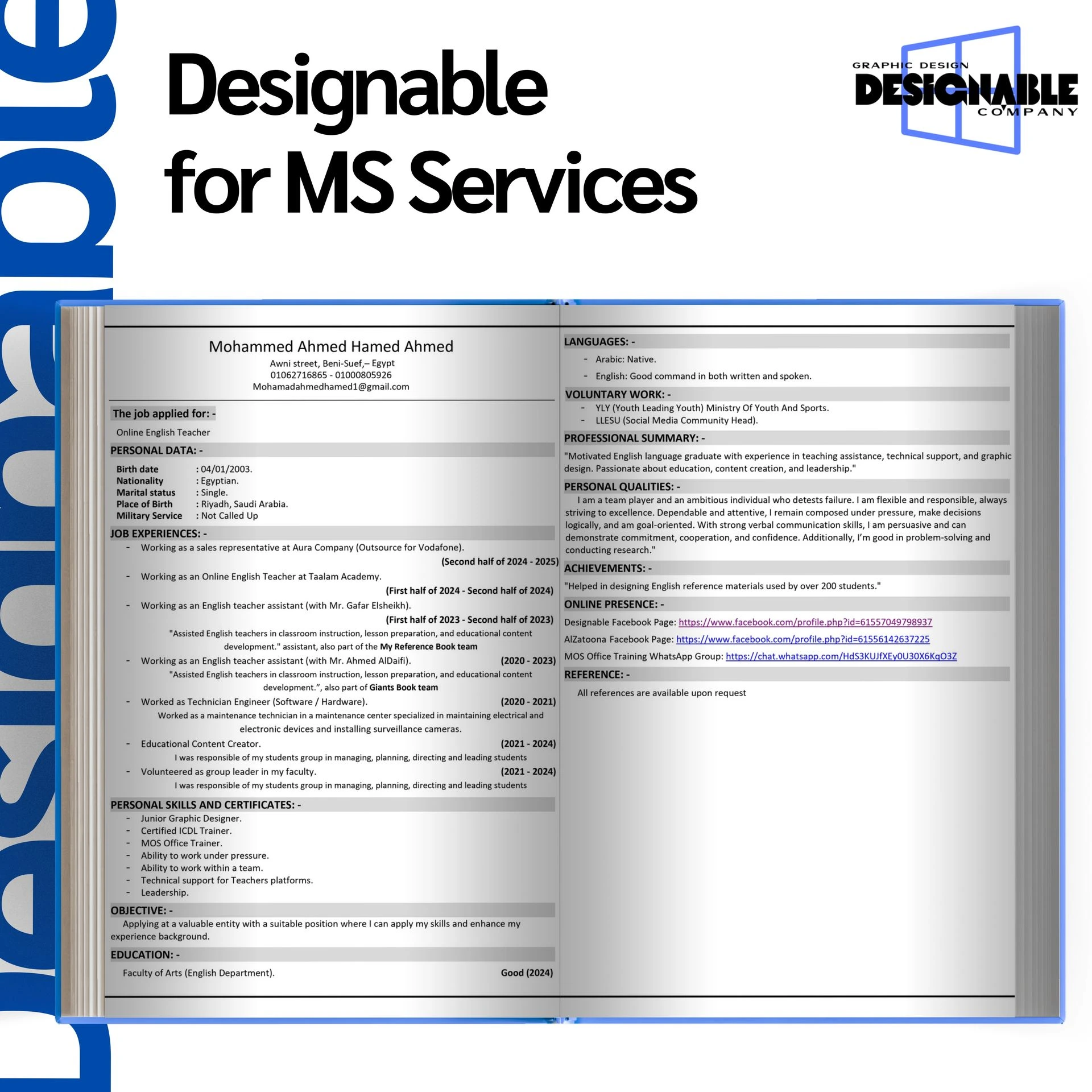 "بارك الله فيك ورزقكم الله من واسع فضله عمل أكثر من رائع عاشت الأيادي وان شاء الله انا زبون دائم لحضرتك اي مشروع في المستقبل الي ما اشتغله الا يمك بوركت جهودكم" مستر ياسر محمد مدرس لغة انجليزية (بالعراق)